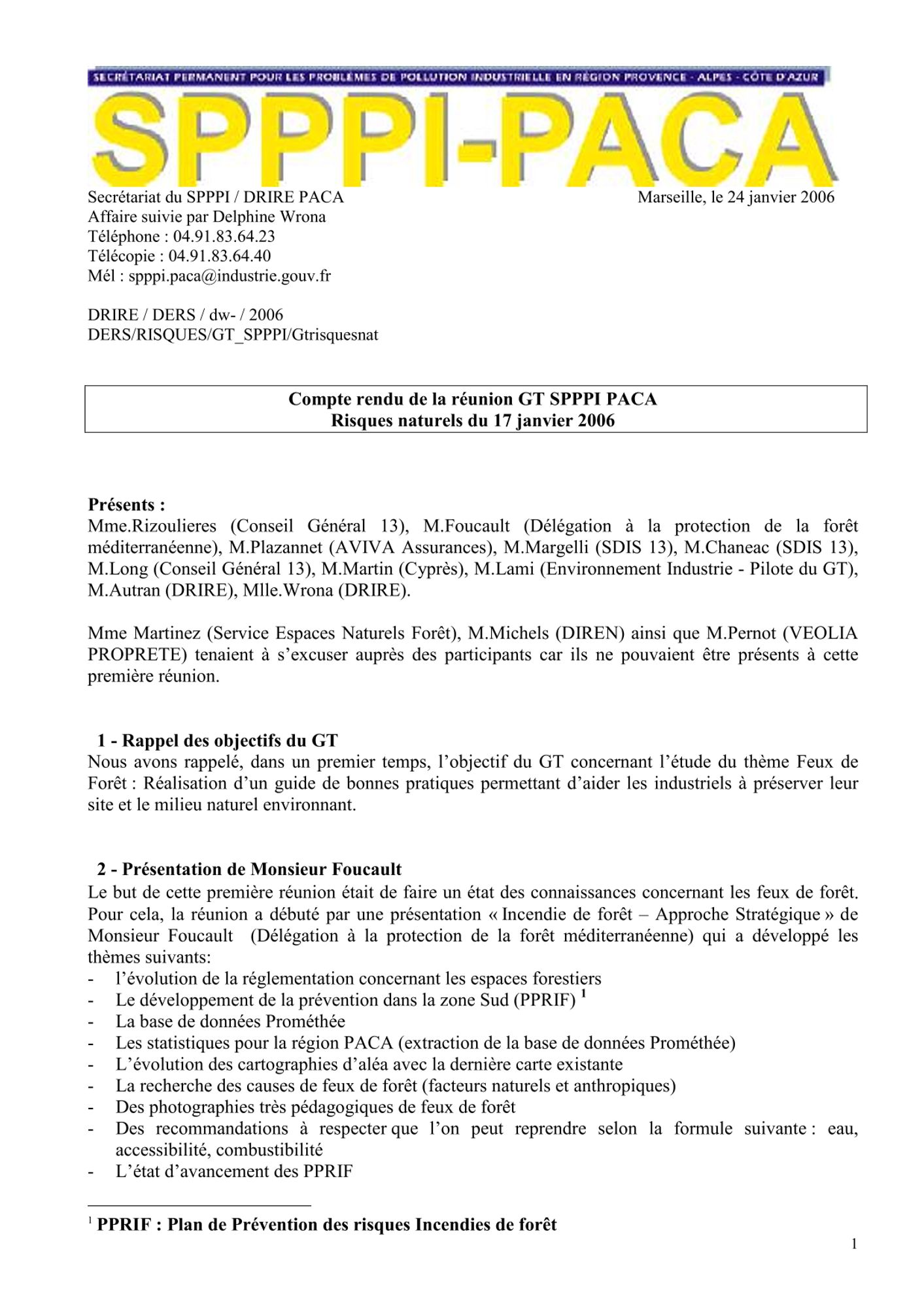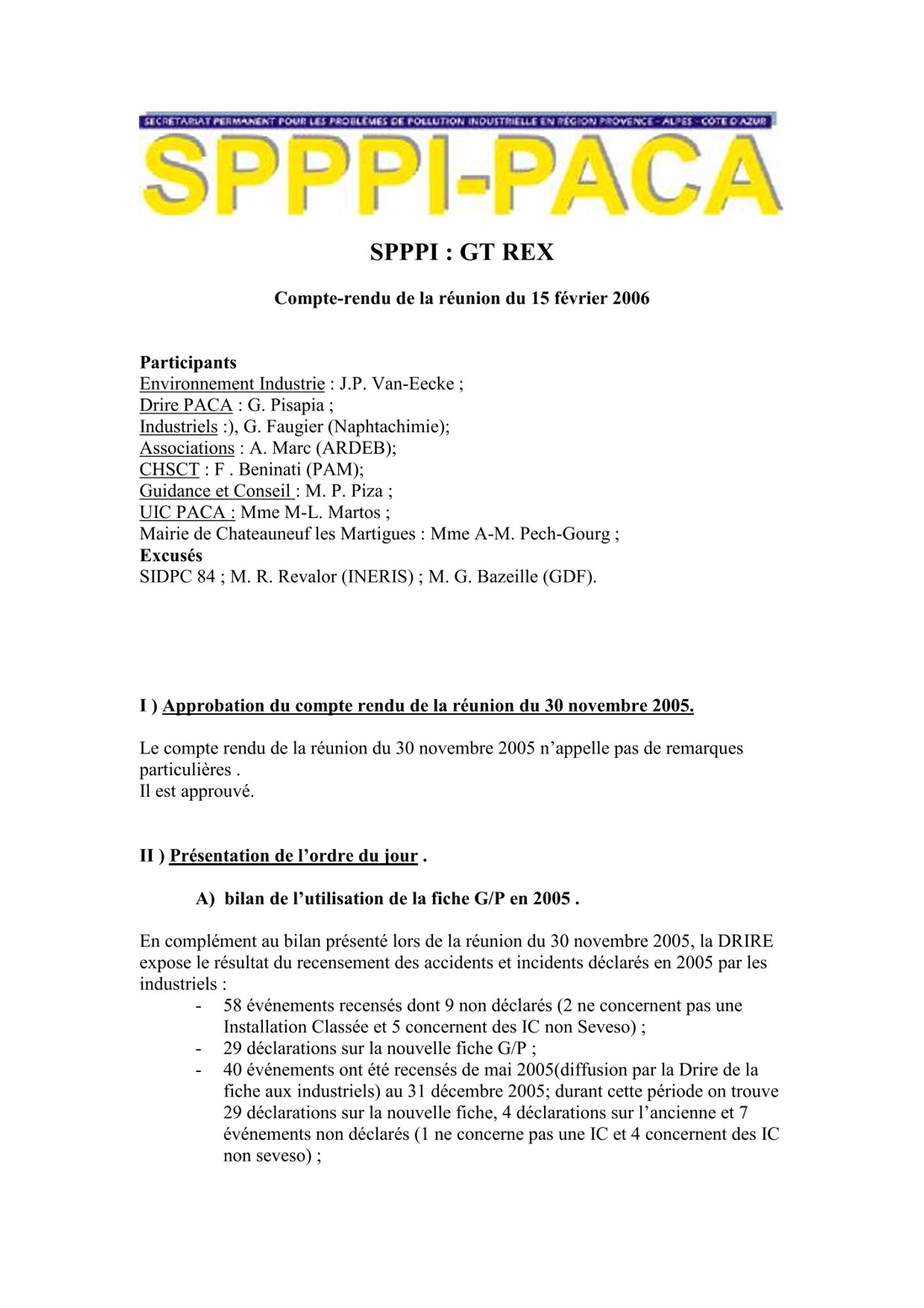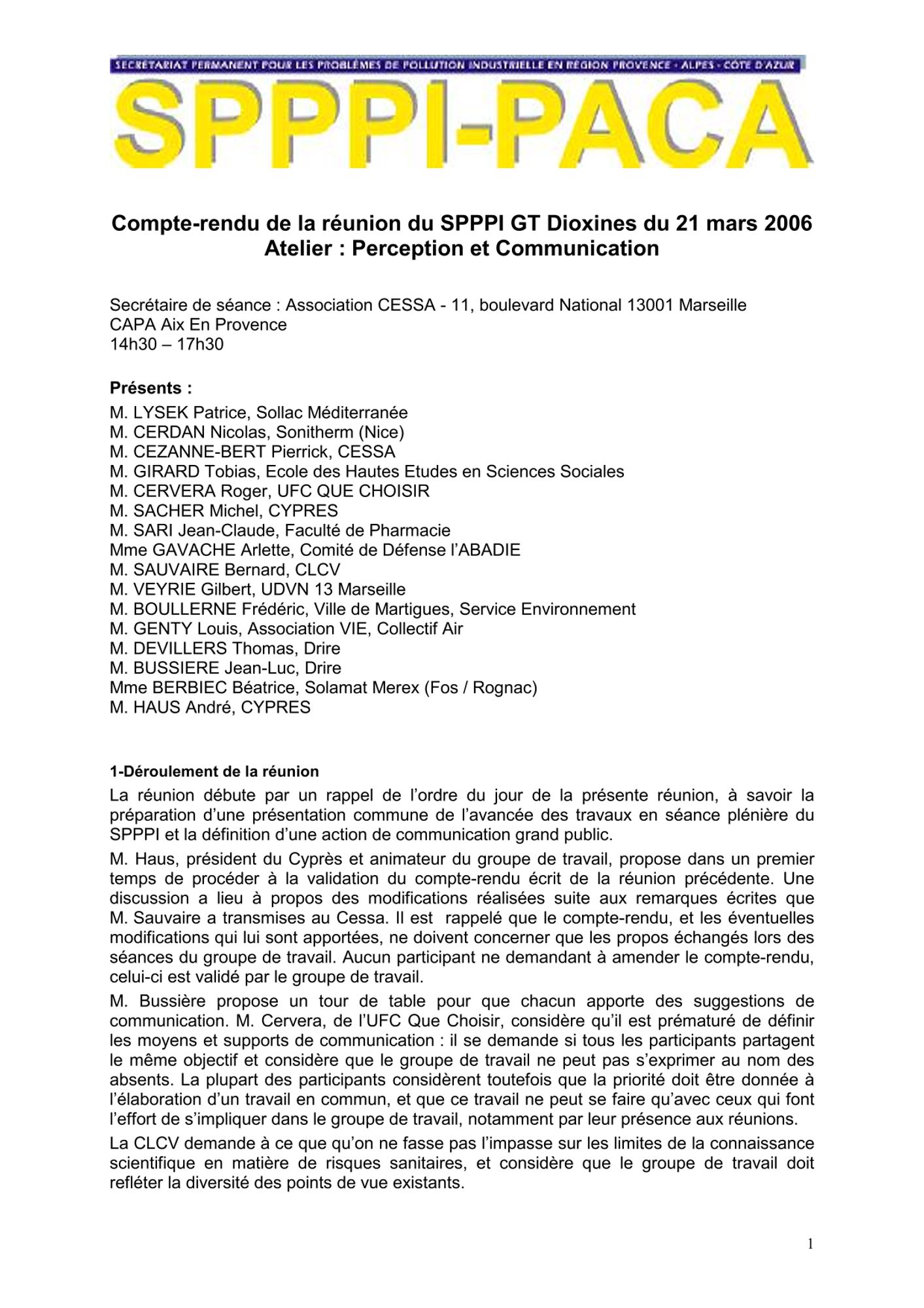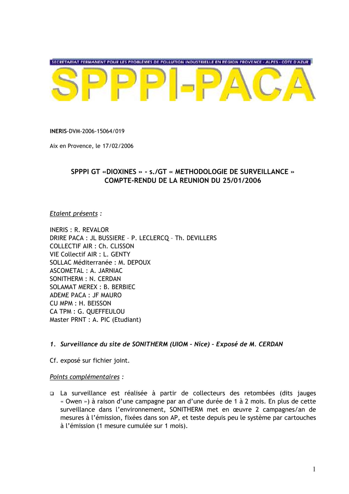 Comptes rendus et relevés de décision 2006 de janvier à mars CR et RD_Etude actualisation des quotas sternes_22/03/2006 (308.7 Ko) CR et RD_Réunion du SPPPI GT Dioxines_Atelier : Perception et Communication_21/03/2006 (84.7 Ko) CR et RD_Risques naturels_28/02/2006 (92.5 Ko) CR et RD_GT REX_15/02/2006 (82.8 Ko) CR et RD_Assistance du CESSA_31/01/2006_ (99.0 Ko) CR et RD_Méthodologie de surveillance_25/01/2006 (84.3 Ko) CR et RD_Risques naturels_17/01/2006 (88.5 Ko)