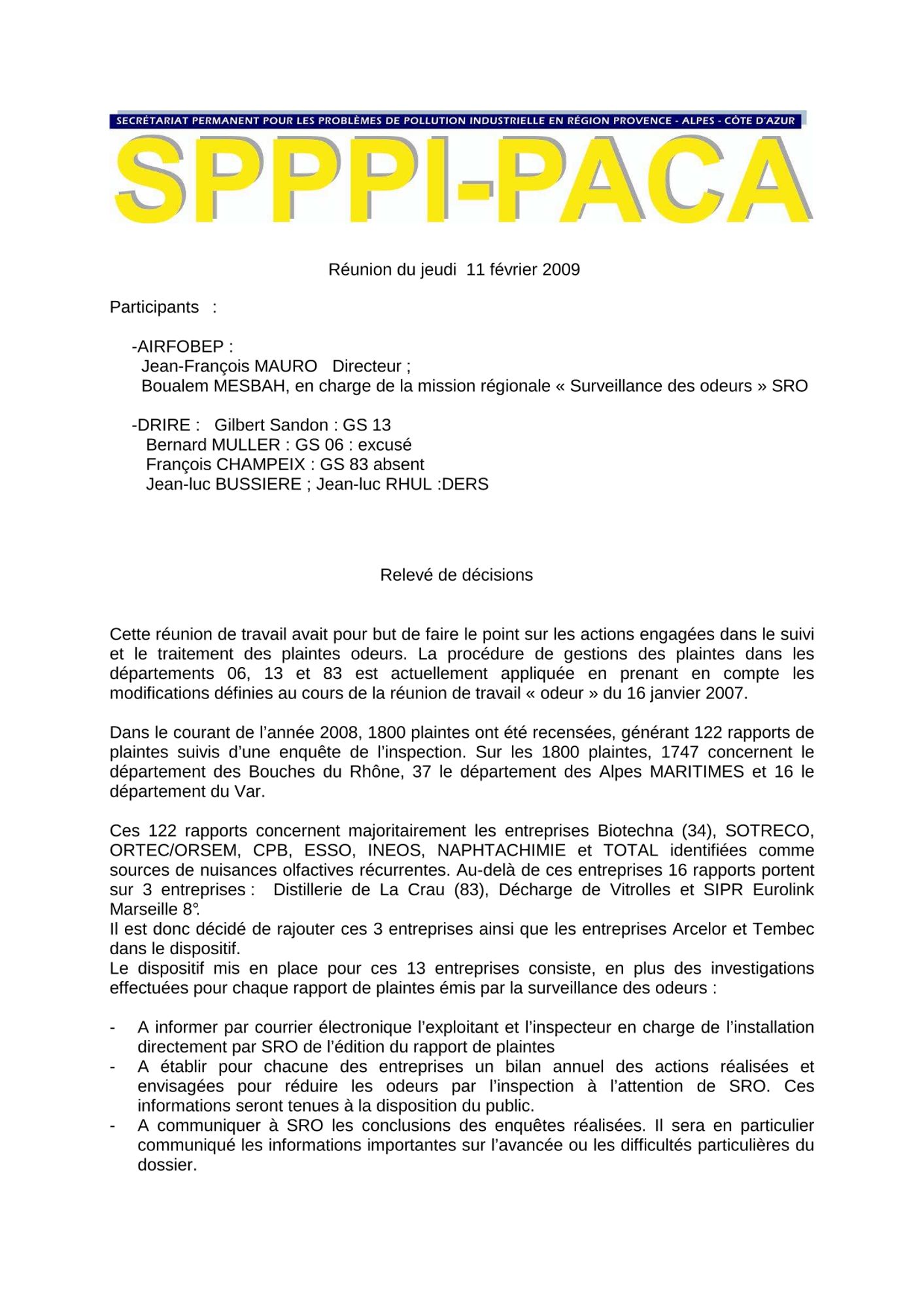 Comptes rendus et relevés de décision 2009 CR et RD_Point sur les actions engagées dans le suivi et le traitement des plaintes odeurs_11/02/2009 (48.8 Ko)