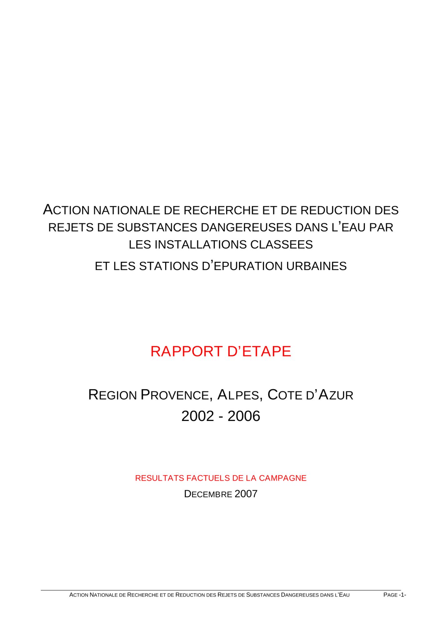 RSDE - rapport d'étape - décembre 2007