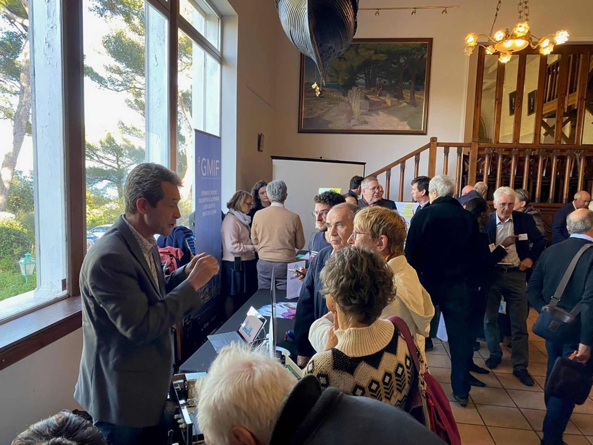 La réunion en deux temps : stands puis plénière.